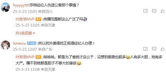 付政浩与网友互动互动提到,具体为何产生阴阳合同与亨特经纪人伪造公章相关事宜有关,都是为了省钱才这么干,没想到套路也挺多。